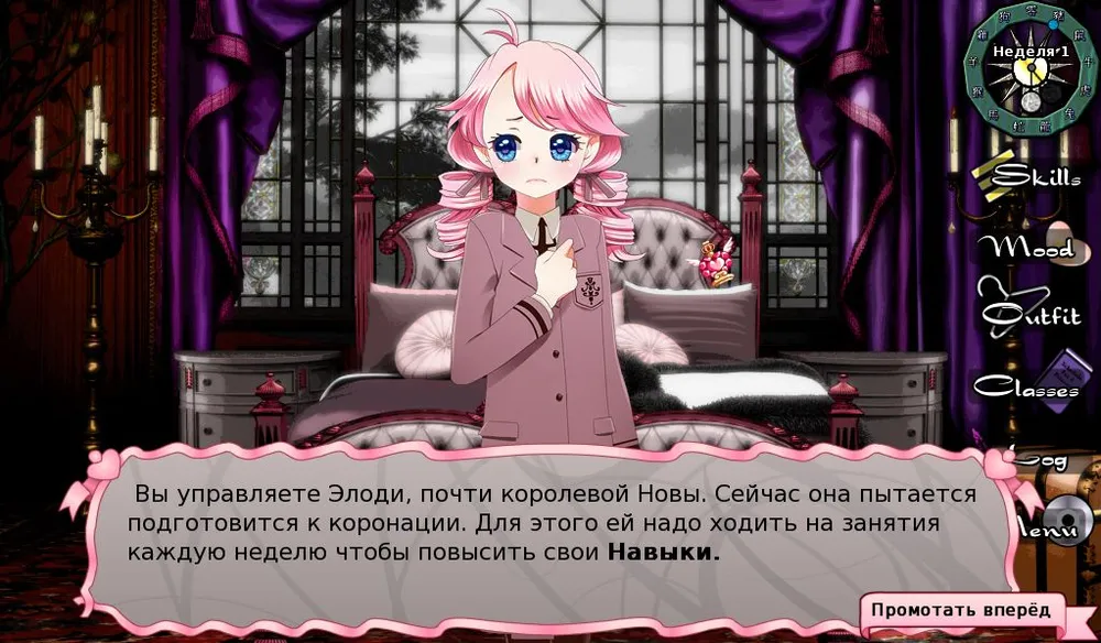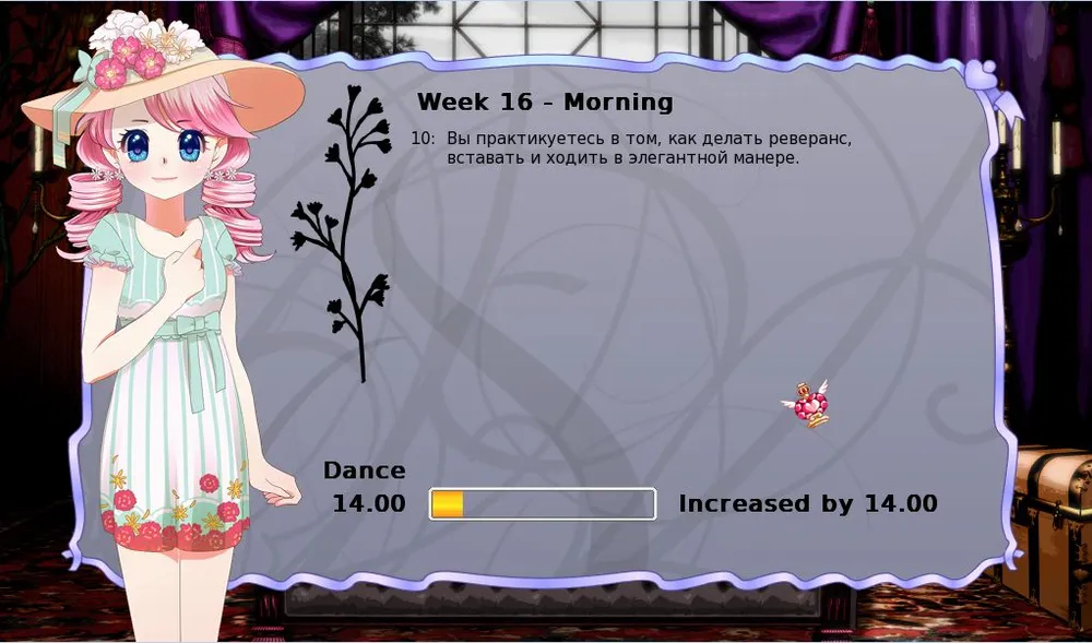 И выбрав воскресное времяпровождение, можно поменять настроение Элоди в нужную сторону для изучения нужного навыка.
