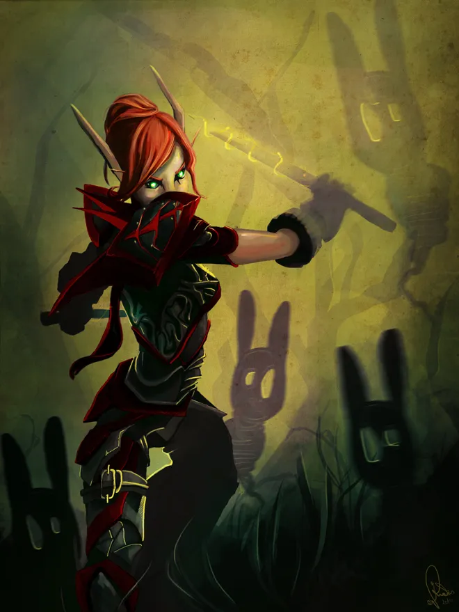 Эльф неспеша побрел прочь, но на душе у него стало как-то неспокойно. В надежде развеять сомнения, он обернулся...чтобы получить удар кинжалом в сердце. Девушка ядовито усмехнулась, отталкивая от себя тело напарника.