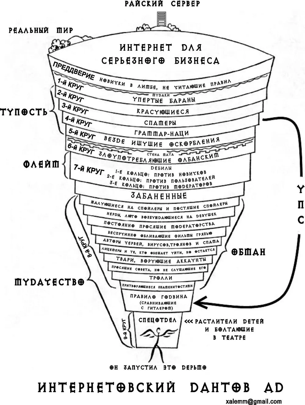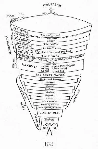 Дело в том, что по сети уже давно ходит довольно-таки оригинальная переделка схемы Дантовского Ада (согласно Божественной Комедии Данте Алигьери ад устроен в виде 9-ти кругов в каждом из которых мучаются строго определенные грешники. В общем, там очень серьезная проработка бэка)