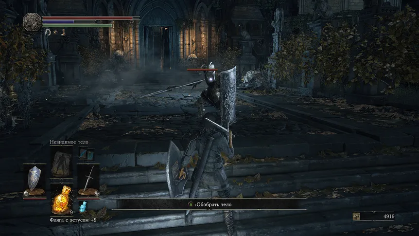 5. Локация Замок Лотрика и Костер с аналогичный названием. Как только мы здесь материализуемся, то видим, как в дверь выходят 2 Рыцаря Лотрика. Они идут через комнату, где сидят 2 Священника (которые их подлечивают в битве, если что!) и заходят в следующую комнату, где есть еще 1 Рыцарь и Священник. Этих 6 мобов мы и будем бить. Надо одеть кольцо на бесшумность. Сначала идем не спеша следом, ждем, пока Рыцари начнут спускаться по лестнице, потом убиваем обоих Священников. Далее надо встать на месте второго священника и убивать каждого из Рыцарей по очереди, когда они будут возвращаться: бэкстаб и добивание быстрым сильным мечом – у вас к этому времени будет выбор оружия (я бил мечом Солнца+5). Потом бежим в дальнюю комнату, аналогично убиваем третьего Рыцаря, а потом добиваем Священника. Если вы используете Невидимость, все вообще упрощается, можно ничего не выжидать, а просто бить их всех подряд по очереди. В результате за убийство 6 мобов мы получаем 13000 душ (с кольцом и щитом) и, что немаловажно, из этих Рыцарей периодически падают обломки титанита! Если у вас есть нереализованные хотелки относительно прокачки еще нескольких видов оружия на этом этапе, то фарм на этой и предыдущей точке позволит в итоге собрать титанит для прокачки очередного оружия до +9. Кстати, если пройти в обратную сторону от Костра, подняться по лестнице, убив 2 рядовых мобов и повернуть направо в небольшую комнату, то туда свалится Крылатый рыцарь и будет стоять к вам спиной. Под бесшумностью его тоже можно бэкстабить и добивать, но он более толстый и опасный. С него падает 3400 душ и обломки титанита.