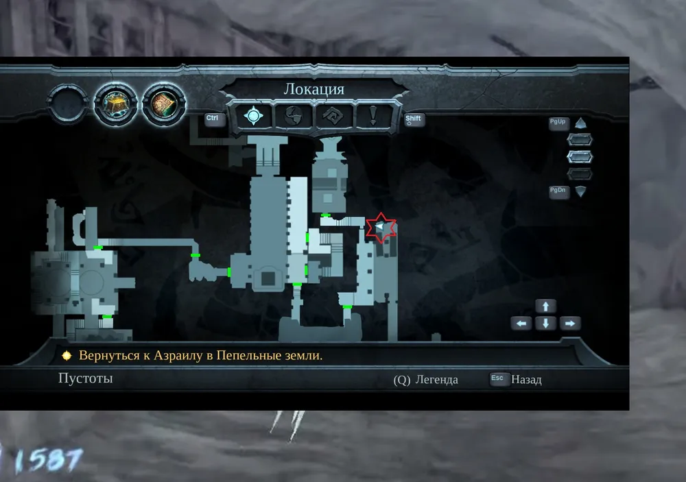 2. "Сумрачный собор" В следующем помещении, после того как взрывали кристаллы ради осколка жизни, взлетаем на воздушном потоке в северный угол, там артефакт