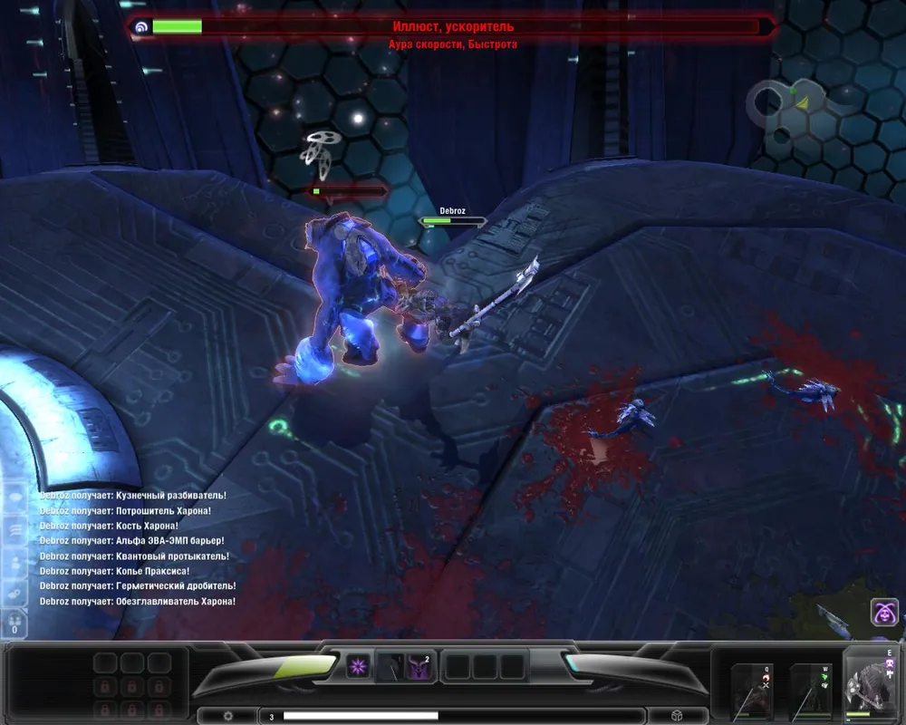 Клик-клик! Новый уровень. О! Новая шмотка выпала. Это что? Телепорт. Очередная порция мобов. А вот и босс. Два раза применил умение - и он готов. Слабак. Возвращение на корабль и поход в редактор для обвешивания персонажа лутом.