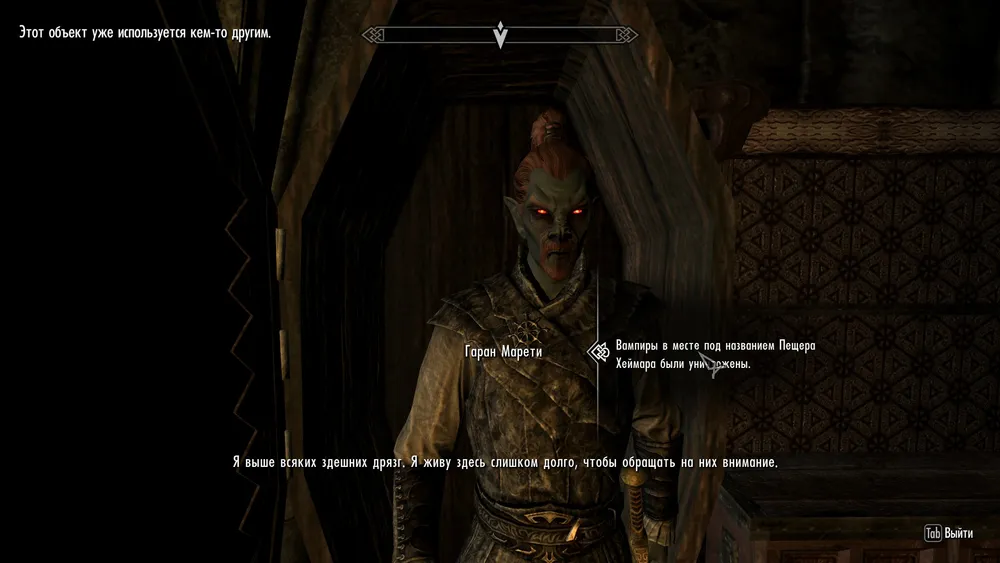 Это задание выдает Гаран Марети. Он попросит убить вампира и его шайку. Отправляемся в пещеру Хеймара. В пещере нас поджидают вампиры, волкихарские вампиры и их слуги. Убиваем прислуг и главного вампира, также, можете зачистить всю пещеру. После этого идем к Гарану за наградой. В награду получаем обруч изменения.