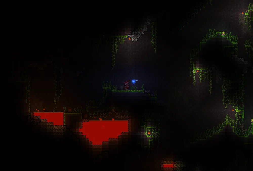 По скриншотам видно, что стало меньше белого света. Лава светится красным. Светлячок голубоват. Споры слегка отдают зеленым. Факелы светят желтоватым светом.