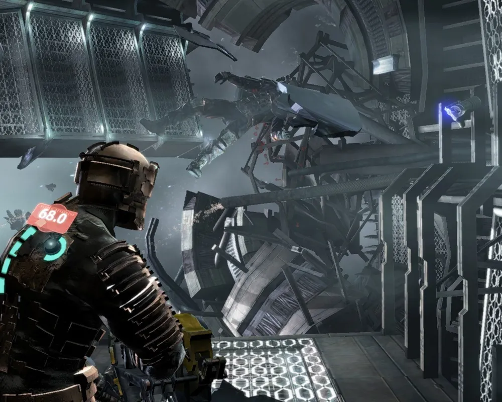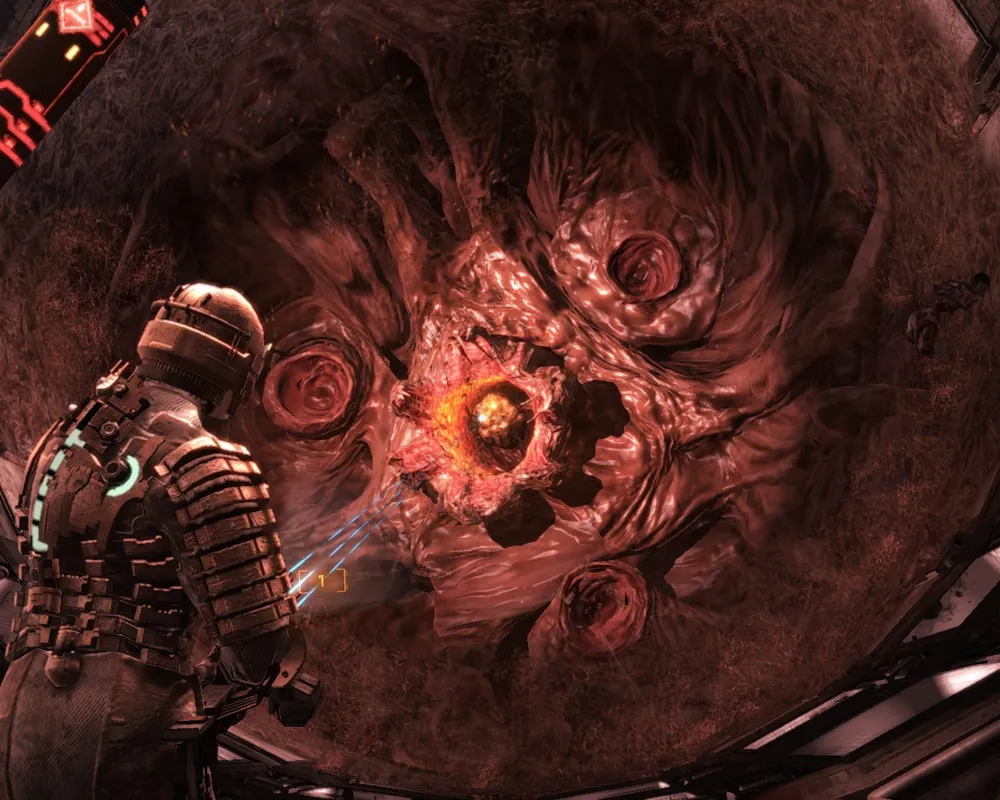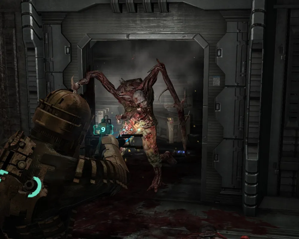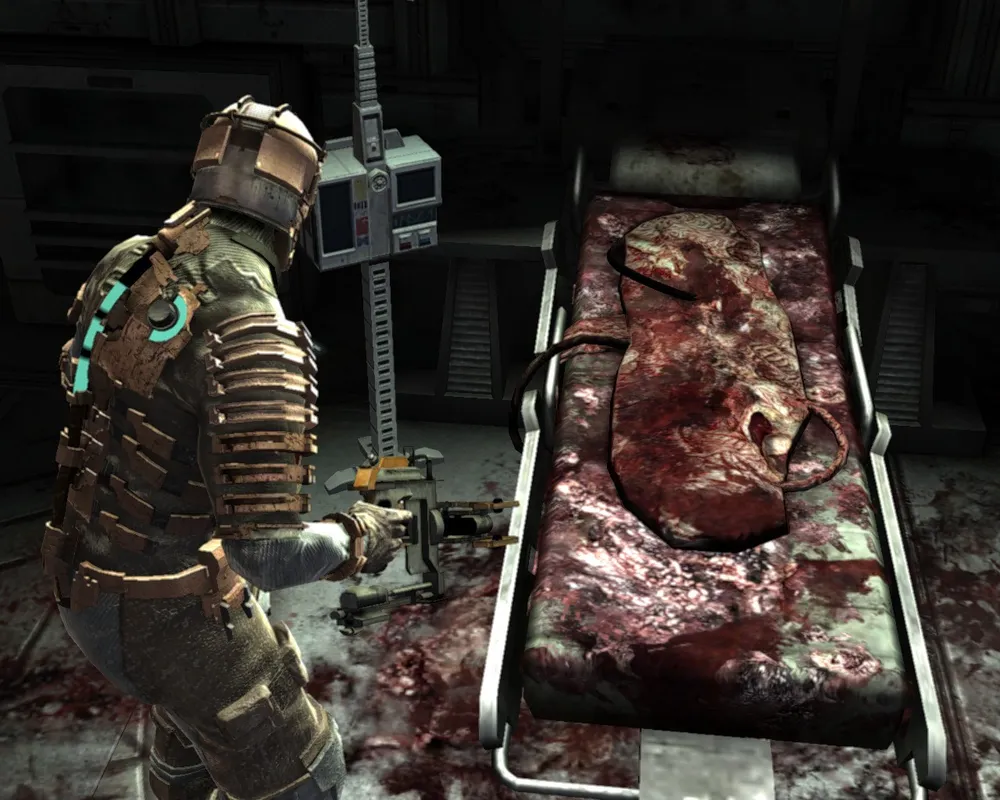 Очевидно, что такой ритм совсем не для Dead Space. Во время боя важна меткость, а не плотность огня, очки здоровья в бою улетучиваются чрезвычайно быстро, поэтому лихой наскок равносилен самоубийству. Здесь надо постоянно следить за тем, кто и с какой стороны к вам подкрадывается, не стыдиться отступать и чрезвычайно осторожно «жать на курок». Неловкое движение мышкой – и выстрел не нанесет врагу существенного вреда. Это может стоить жизни, поскольку из вентиляционной шахты уже наверняка лезет другая тварь. Да и после боя вы вряд ли побежите, размахивая пушкой, в следующее помещение, а скорее будете лихорадочно оглядываться по сторонам в поисках новых противников, перезаряжая по порядку каждый из стволов. И лишь после этого, глубоко вздохнув, сделаете шаг вперед...