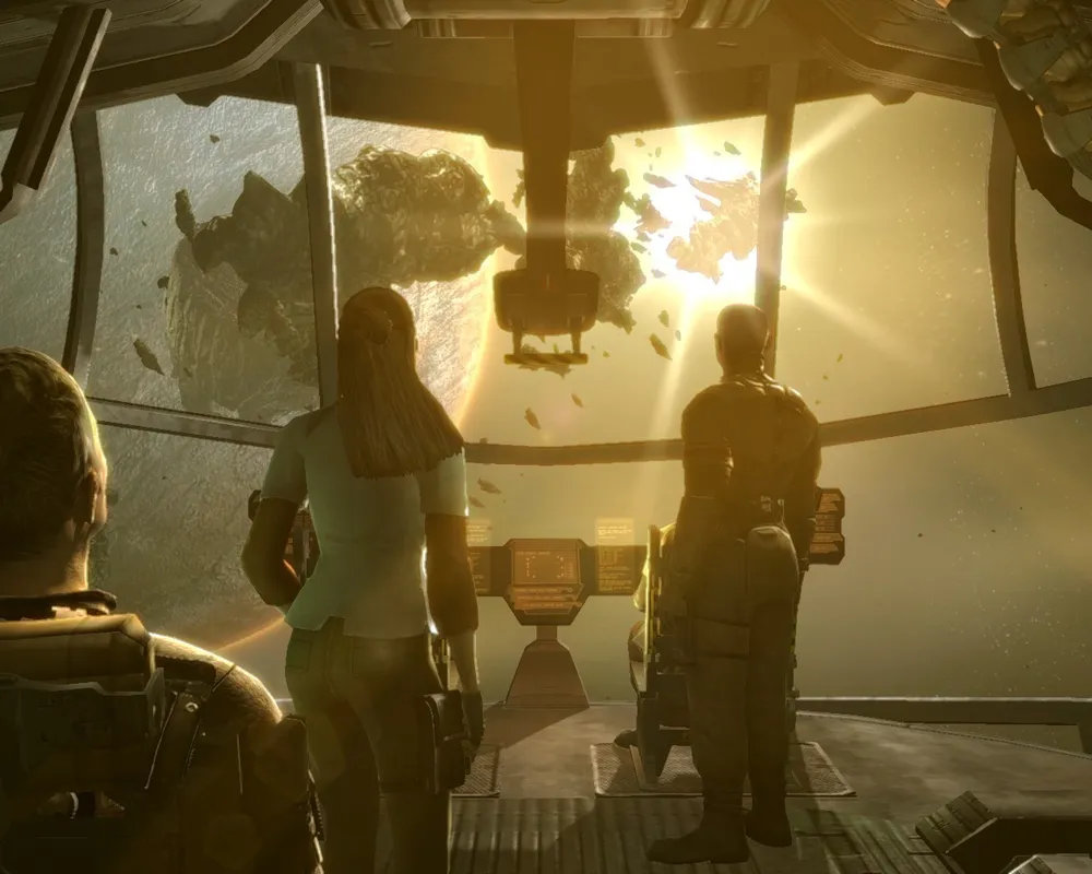 Когда я садился за Dead Space, казалось что после Doom 3 любая "космическая страшилка" будет вторичной. Как бы не так! Уже первые минуты заставляют изменить мнение. Наш герой, член экипажа ремонтного судна, подлетает к огромной шахтерской станции, которая расщепляет на полезные ископаемые целые планеты. Буквально через пять минут пребывания на корабле бедолага понимает: эта поездка станет для него серьезным испытанием. Никто из экипажа не выходит встречать ремонтную бригаду, а жуткого вида монстры вскоре разрывают на части двух его напарников. С этого момента ты и будешь управлять бравым инженером, которому под руководством выживших ремонтников предстоит разобраться, что произошло на станции, и по возможности убраться с неё куда подальше. Завязка выглядит простецкой, но не обманывайся - сценаристы поработали на славу. Сюжет настолько увлекает, что порой только любопытство позволяет совладать с нервами и переступить порог очередной комнаты.