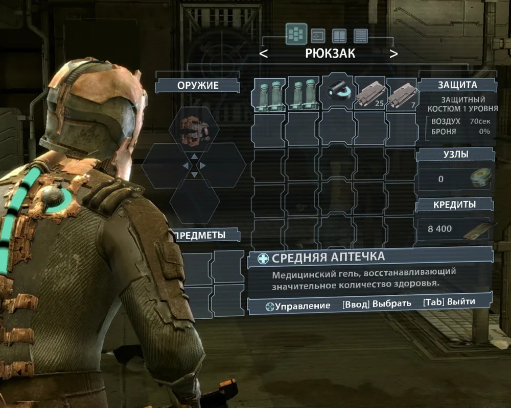 В попадающихся на пути следования терминалах продаются новые предметы. Кроме того, экипировку можно улучшать на специальных верстаках, используя дефицитные силовые шайбы. Прокачать позволяется как оружие, так и защитный костюм героя, включая кинетический и стазис-модули. У стволов увеличиваются боезапас, убойная сила и скорость перезарядки, костюм приобретает большую устойчивость к повреждениям, растет запас кислорода (придется выходить и в открытый космос). Однако все сразу проапгрейдить не получится, по крайней мере за первое прохождение. Сразу после просмотра финальных титров игроку предлагают опять отправиться на шахтерскую станцию, чтобы начать все заново, но уже с улучшенной экипировкой. Занятие это весьма сомнительное, поскольку уровень сложности остается тем же, а главный герой с мощными пушками и непробиваемым костюмом превращается в машину для убийства.