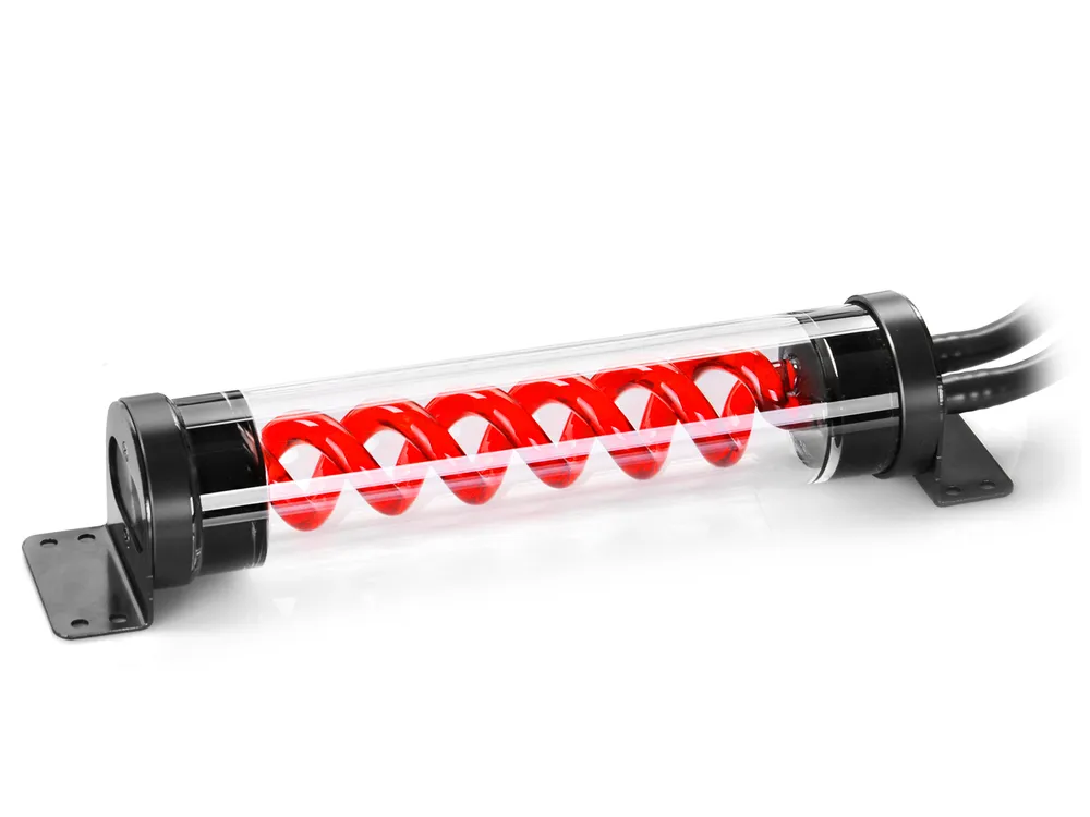 Как уже понятно из названия, Deepcool разработали дизайн корпуса совместно с ASUS ROG. Получилось очень брутально – чёрно-красные панели из металла и пластика и кроваво-алая колба системы охлаждения в стиле молекулы ДНК (или T-вируса, если вы поклонник корпорации Umbrella и Resident Evil) подкупают сразу. За эти «молекулярные мотивы» модель и получила название Genome.