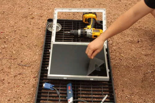 Снимите пластиковую рамку, открутив все винты на обратной стороне.