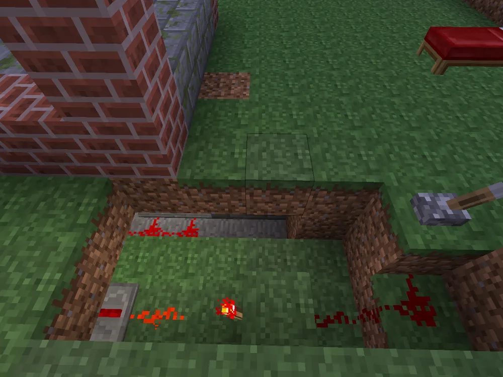 Читал блог маинкрафта, и наткнулся на туториал по созданию секретной двери с помощью поршней, но мне она показалась не достаточно секретной, и моя ситуация требовала двери, которая располагалась бы в горизонтальном положении, в общем, мне нужен был секретный люк, который находился бы в одной плоскости с.. хм, плоскостью. Так вот, приступим к созданию этой штуки.