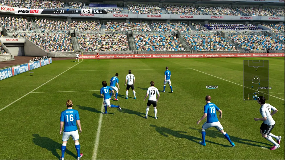 О защитниках отдельный разговор. Я думаю все игроки PES поймут меня, если я скажу, что в 12 их просто не было, были сони, которые не реагировали на прокатывающийся в 30 см мимо них мяч, были оловянные солдатики, которые падали в подкате рядом с игроком и лежали пока мимо них пробегал соперник, их можно было по разному назвать, но только не защитниками. В PES 2013 я же увидел полноценных игроков команды, когда Пепе в прыжке выбивает мяч из пустых ворот или Терри успевший на вражеский прострел в штафную выносит его в поле, начинаешь понимать "А с обороной то лучше играется!".