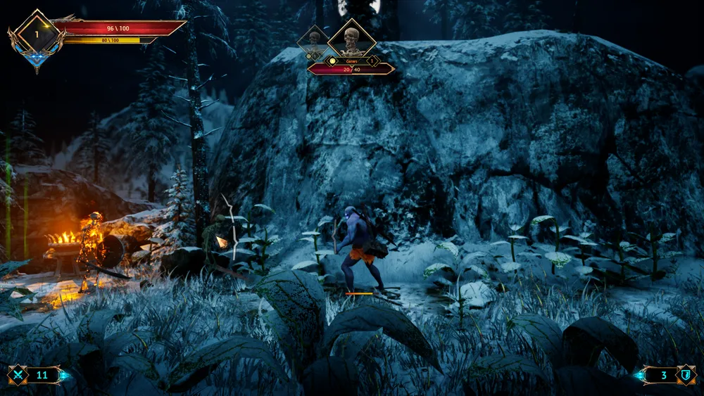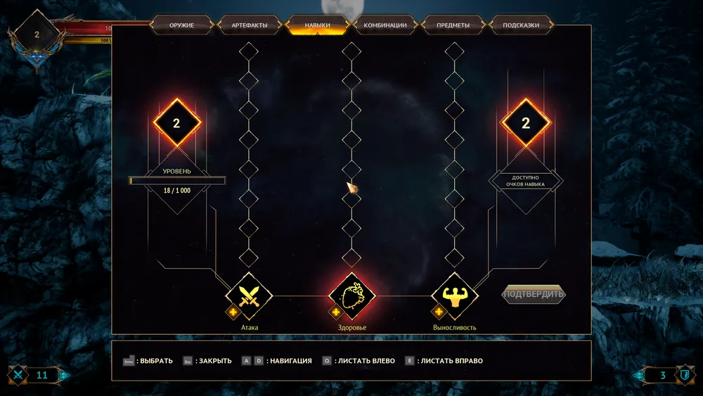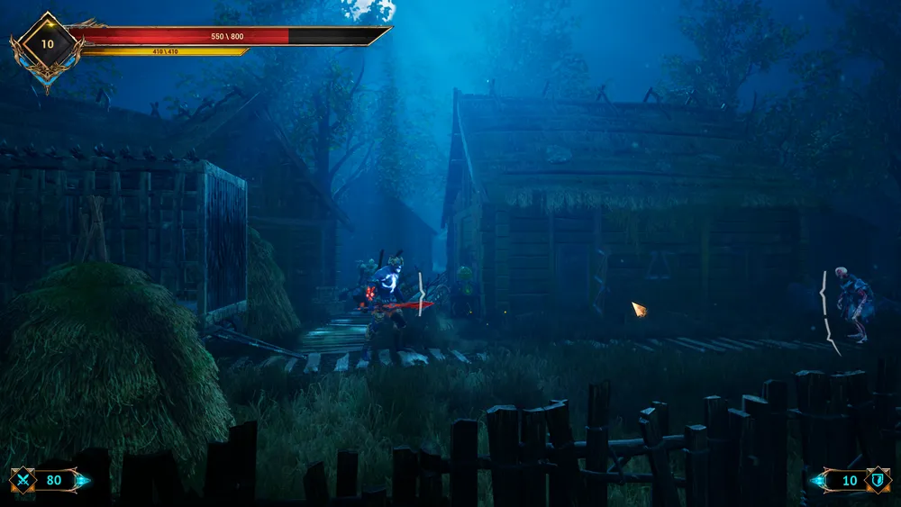 Demon Skin напомнила мне Trine и 9 Monkeys of Shaolin (тоже родом из России). От первой она получила волшебную атмосферу, только более мрачную, и приключенческие элементы, а от второй вдумчивый подход к сражениям и перекаты. По своему духу игра от российских разработчиков ближе к Trine: мы идем слева направо, сражаемся с врагами, попутно решая головоломки и общаемся с возникающими NPC, только в Demon Skin сражений больше – а головоломок, в том числе с физикой, меньше.