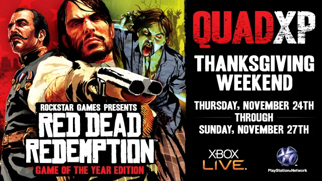 Rockstar ко дню благодарения сделала маленький подарок любителям мультиплеерных сражений Red Dead Redemption: c четверга до утра понедельника вас ждет бонус в виде четырёкратного увеличения опыта. Приятных выходных.