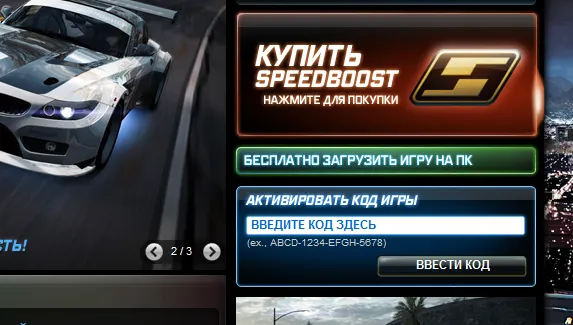 1) Зайдите на сайт http://world.needforspeed.com/home?lang=ru
