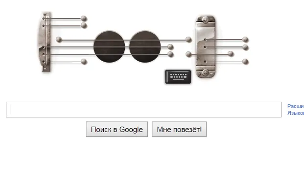 Сегодня, в честь дня рождения Леса Пола, одного из создателей одноименной электрогитары, гугл создал свою версию инструмента, на котором 9 струн (всё это, кстати, очень отдаленно напоминает слово Google, разве что два резонаторных отверстия посередине похожи на две O). Управление на кнопки 1-9 (либо от Q до O, от A до L, от Z до >)