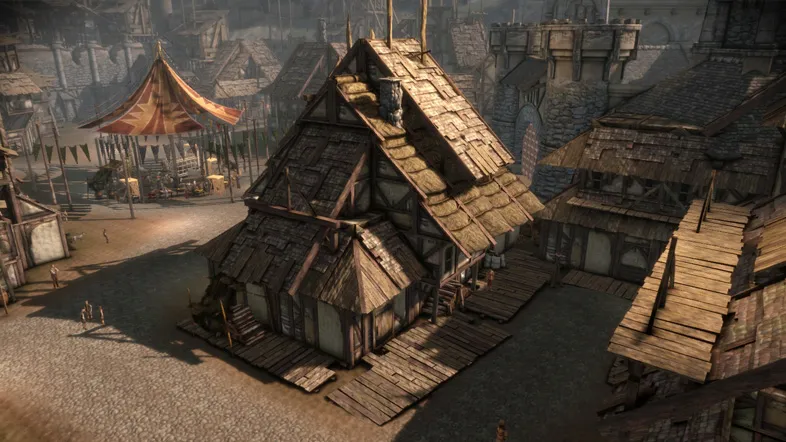 «Денерим, столица Ферелдена, возник как сторожевая застава древнего Империума Тевинтер. Их маги воздвигли темную башню из недр горы как символ величия Империума. Когда начался закат Империума, башня перешла в руки тейрнов, тысячу лет правивших этим регионом. В наши дни эту башню, известную теперь как Форт Дракон, сразу же узнает любой корабль, приближающийся к скалистому побережью. Город, выросший вокруг башни, был почти целиком создан из камня горы, на которой возник. В Эпоху Дракона население возросло настолько, что превысило тот предел численности, которую мог вместить в себя город. Тесные кварталы, соединенные сетью мостов, выстроены чуть ли не на крышах друг друга. Узкие улицы Нижних Доков представляют собой настоящий лабиринт, а Эльфийское Гетто настолько перенаселено, что за одно только последнее десятилетие потребовалось несколько чисток, чтобы сохранить порядок. Всему остальному миру Денерим известен как место рождения Андрасте. Однако по ферелденскому обычаю памятник пророку, воздвигнутый в Дворцовом Районе, скромен – просто огромный камень, который украшает одно-единственное послание мира. Верующие со всего света приходят к Камню Рождения и возносят тихую, почтительную молитву. Так и существует Денерим, и местные жители не мыслят для себя иной жизни».