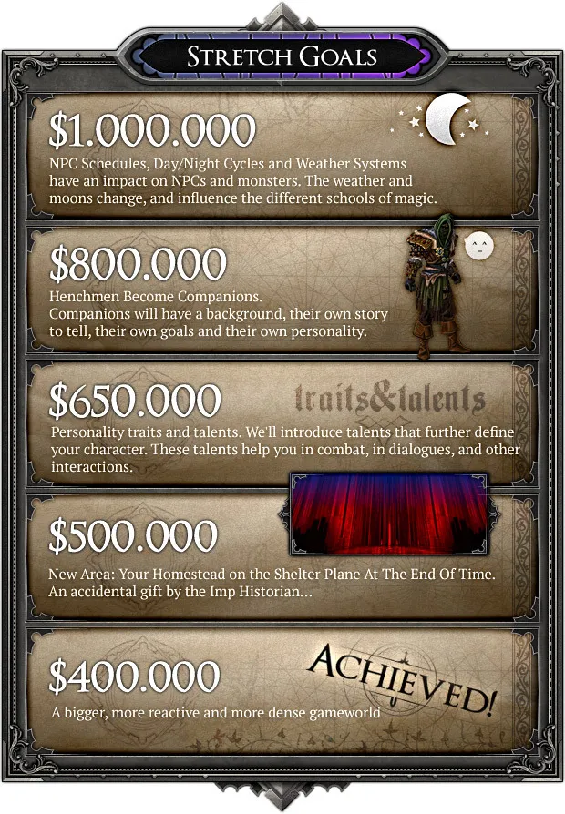 $500 тыс. будут означать поместье главгероя, расположенное в измерении-убежище (Shelter Plane) в конце времен. (Несколько пафоснее, чем кондоминиум в Майами, ага.) $650 тыс. — трэйты и таланты героя, оказывающие влияние на бои, диалоги и пр. $800 тыс. — хэнчмены (henchmen, прислужники героев) станут компаньонами (с собственными личностями, целями и историями).