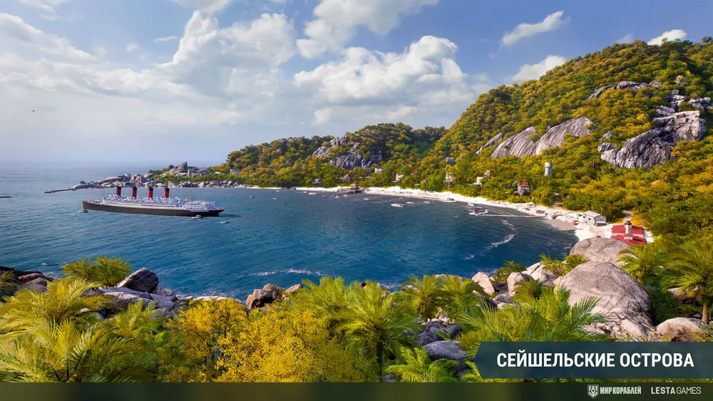 В Обновлении 12.3 появится новая карта «Сейшельские острова», переносящая корабельные баталии в теплую экзотическую местность. Ландшафт карты приближен к северо-восточной части Сейшельского архипелага с крупными островами Праслин и Ла Диг, а также множеством прилежащих к ним небольших островов. Внешний вид карты представлен зелёными тропическими лесами на гористых островах. «Сейшельские острова» предназначены для Случайных и Кооперативных боёв на кораблях V - IX уровней. Сражения будут проходить в режиме «Превосходство» с четырьмя контрольными точками и двумя вариантами их расположения.
