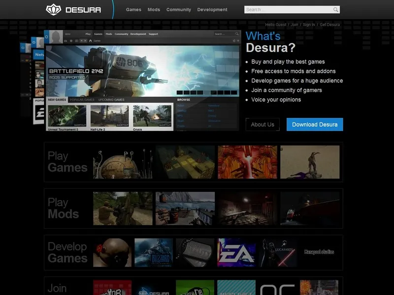 Desura является аналогом Steam от компании VALVe, с той лишь разницей что упор делается на модостроение и инди игры, хотя и полноценные высоко бюджетные проекты там так же будут продаваться. На сегодняшний день игр не так уж и много, в основном одни казуалки. Создатели обещают большое и разнообразное комьюнити, размещение видео и фото, автопатчинг игр, и самое главное - помощь молодым разработчикам и независимым издателям.