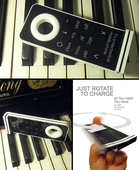 8. «Механический» телефон. Концепт Михаила Ставски (Mikhail Stawsky) предусматривает зарядку аккумулятора с помощью простого вращения устройства на пальце. Технические характеристики устройства не уточняются, да и не они здесь главные, а сама идея. Безусловно, идея достойна внимания, мучает только один вопрос – сколько времени нужно будет крутить телефон до его полной зарядки?