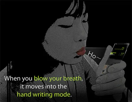 1. Концепт «погодного» телефона. Устройство, которое представил дизайнер Сёган Сонг (Seunghan Song), способно анализировать и представлять в наглядном виде информацию о текущей погоде. Корпус устройства представляет собой полностью прозрачную панель, на которой расположены элементы сенсорного управления. Чтобы активировать режим рукописного ввода, нужно просто подуть на экран телефона.