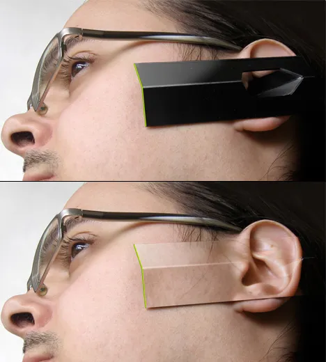 10. Телефон-гарнитура. Зачем покупать гарнитуру, когда можно сделать сам телефон с креплением на ухо? Средняя часть корпуса телефона выдвигается вверх, представляя собой своего рода клипсу-зажим для уха. Материал корпуса – многослойный полимер – позволит устройству не только сворачиваться, но ещё и становиться полностью прозрачным в моменты, когда прибор находится в режиме ожидания.