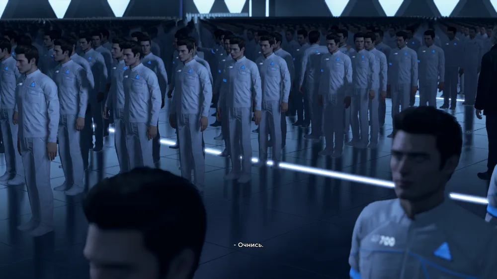 в) Промывка мозгов. Дотронувшись до другого андроида персонаж Маркус может переманить его на свою сторону. Здесь все просто — подошли к неподвижно стоящему пациенту, нажали на кнопку и протагонист касается его с подобной фразой: «Проснись! Ну ты и соня. Тебя даже вчерашний шторм не разбудил...»