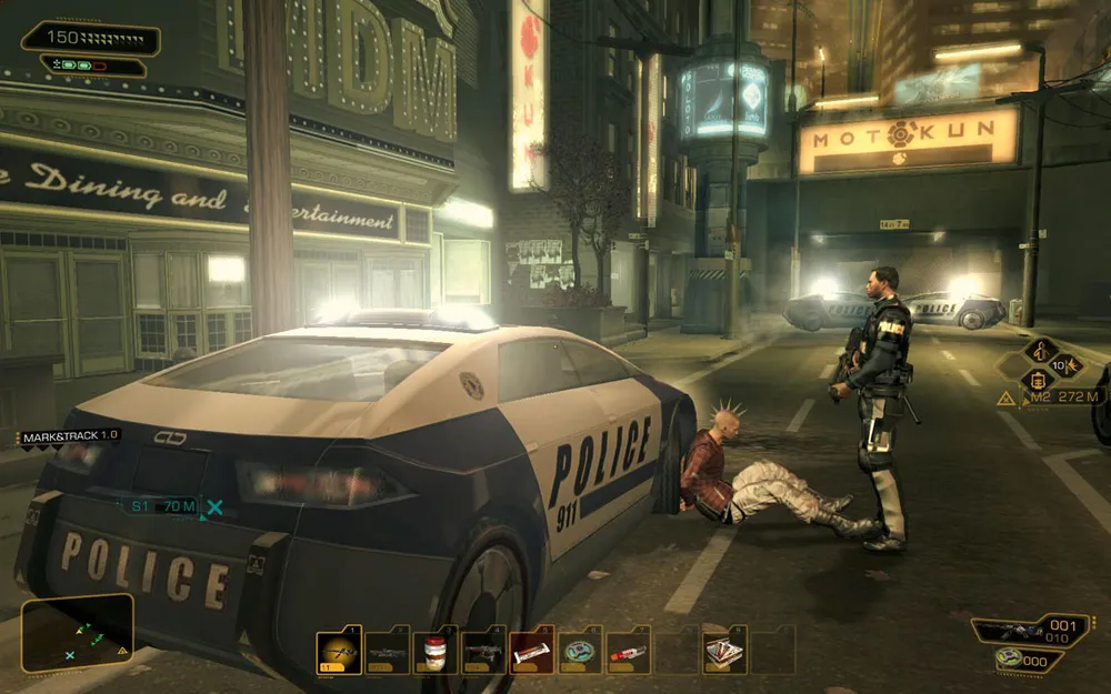 Но наш метод – это скрытность: мы не заметно подкрадываемся и вырубаем незадачливых охранников контекстно-зависимыми добиваниями. Но даже стэлс здесь – тонко сбалансированное оружие: системы временной невидимости и добиваний расходуют энергию, так что либо придётся зарядить батарею, схарчив калорийный снэк, либо тщательно планировать свои действия, чтобы не остаться без защиты. Но вас никогда не заставят остановиться на одном варианте. Дженсен ещё больший мастер на все руки, чем JC, и при правильном подходе может менять роли на лету. А ведь планы придется менять часто: вам придется постоянно подстраиваться под сложный игровой мир, который живет своей жизнью и постоянно меняется. Игра спотыкается о собственную грубость, когда сообщает об этом игроку: мы шесть или семь часов жили в тени, прятались и крались — и тут сразу после кат-сцены нас столкнули лицом к лицу с боссом, оружия против которого у нас не нашлось. Не самым лучшим образом сделанные сражения с боссами повторяют такой шаблон — но, наученные горьким опытом, мы уже знали, чего ждать.