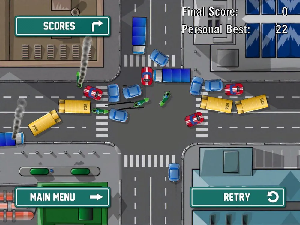 Дано: перекресток, который то и дело пересекают всяческий транспорт: от мотоцикла до школьного автобуса. Задача: всего двумя действиями (остановить машину или ускорить ее ход) как можно дольше продержаться без ДТП. Никаких светофоров и дорожных знаков.