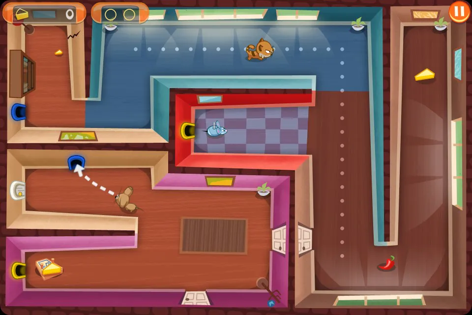 Я запускаю приложение и понимаю, что к этой игре руки приложили Electronic Arts. Но дальше — больше. Симпатичный мультик о том, как мышонок Squeak, который предпочитает называть себя шпионом Squeak, найдя сыр, был пойман с поличным котом. И вот нашему спецагенту всячески удается избежать смерти от когтистого животного. Красивее и эффектнее этой только история знаменитых Тома и Джерри, уж поверьте.