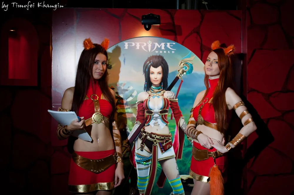 Милые девушки с лисьими ушами и хвостами со стенда Nival представляли игру Prime World.