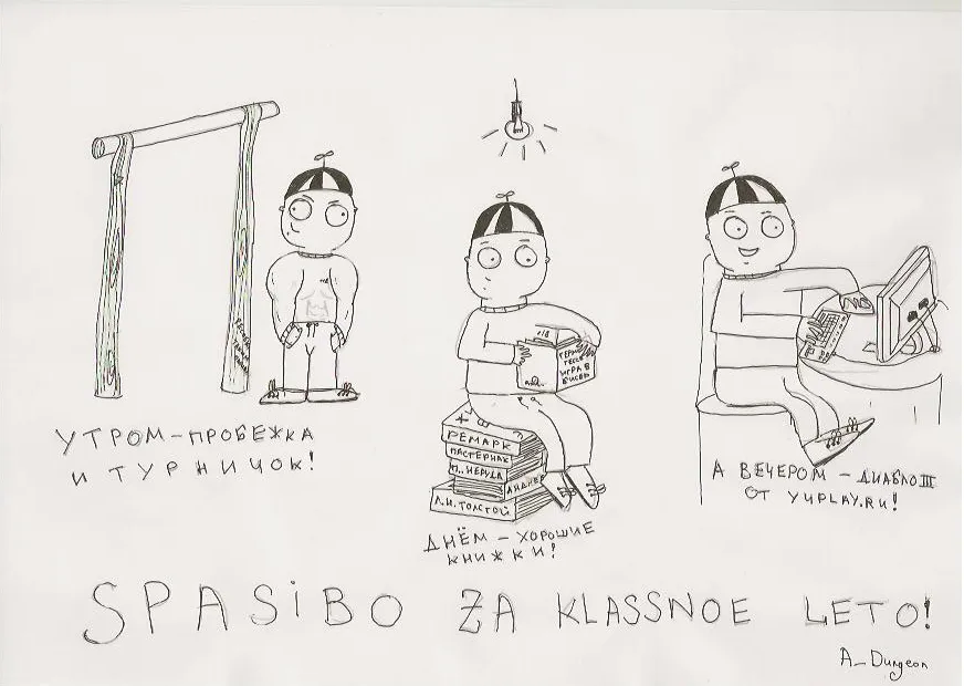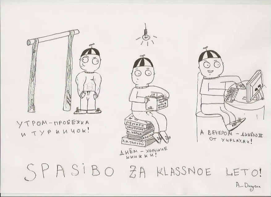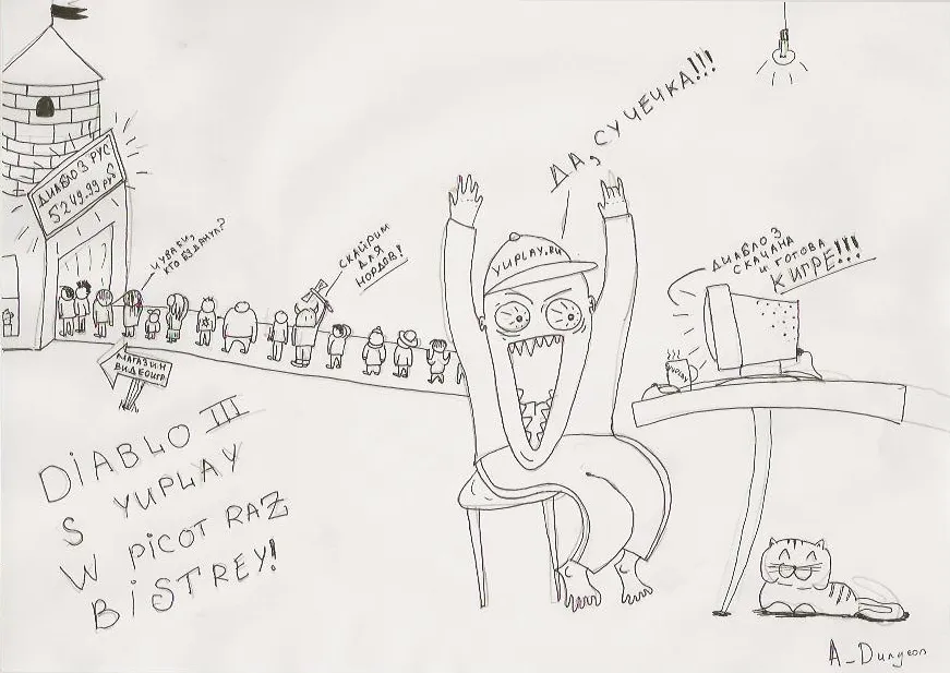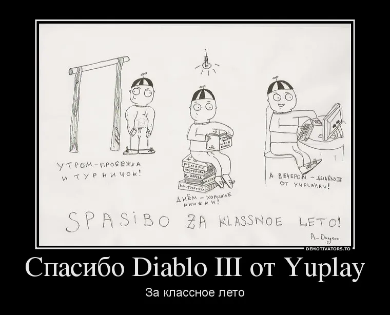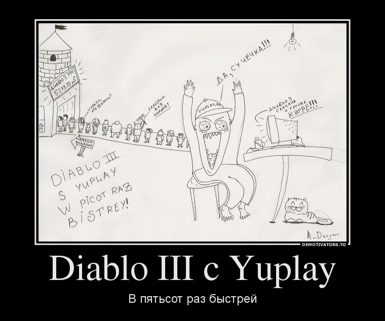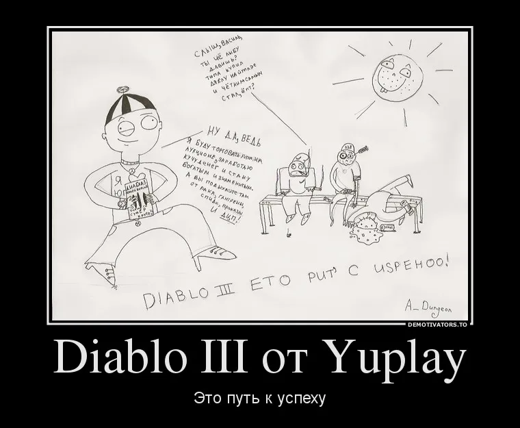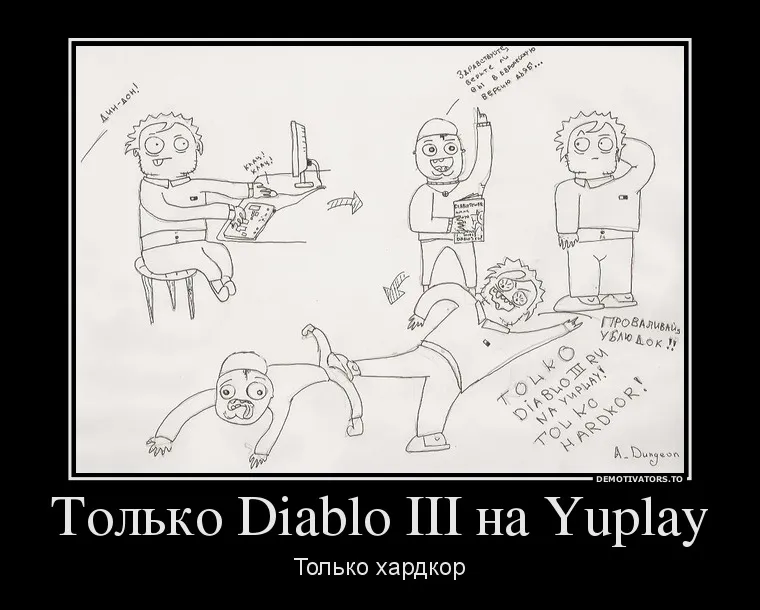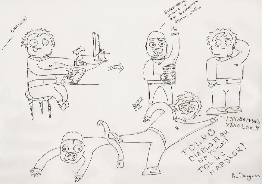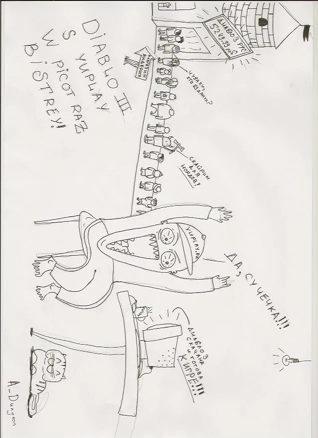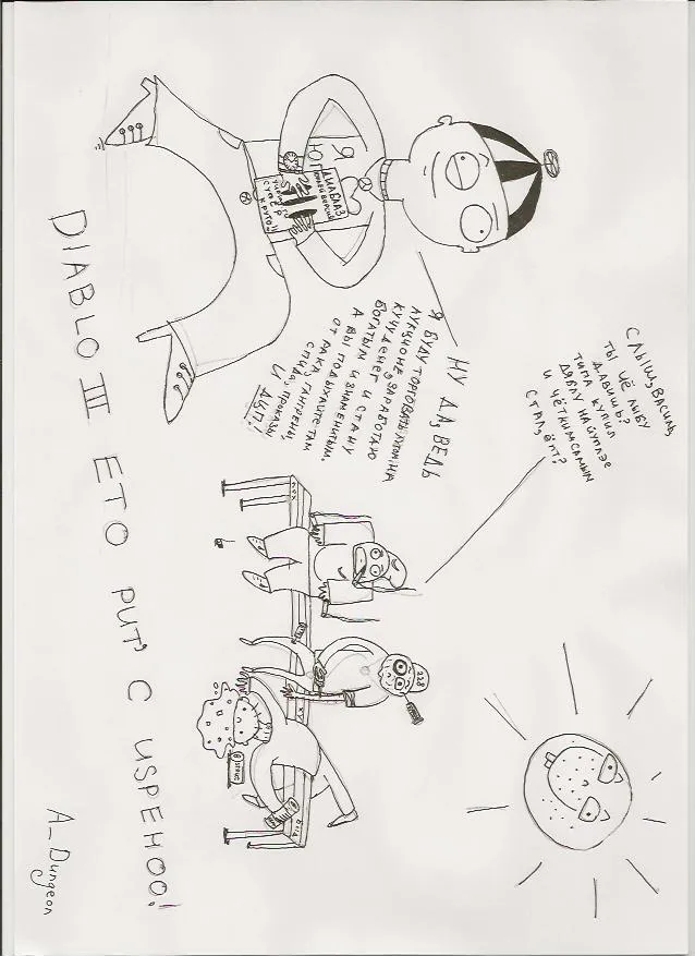 Всем добрый вечер, решил вот попробовать себя в роли художника и нарисовать комиксы на мини-конкурс от YUPLAY.RU "Получи Diablo 3 бесплатно!". Вообще на конкурс нужно было сделать мотиваторы, но я решил отдельно выложить сканы в хорошем разрешении. По-моему вышло недурно, а как считаете Вы? :)