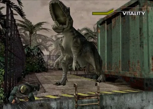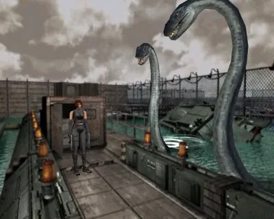 е, просто замечательная и завораживающая. Разработчики и дизайнеры уровней, наверное потратили не мало усилий и креатива что бы создать этот хоть и не большой но красочный и разносторонний мир. Мертвые здания покрытые плесенью и папоротником у подножья, полуразрушенные корпуса в которых шныряют мелкие ящеры и проворные рептилии. Заброшенная и обветшавшая техника, брошенная людьми в панике. И само собой красивейшие виды на ветхие джунгли. Как я уже говорил, миссии в игре разнообразные, вам даже придется управлять танком и отстреливаться от приближающегося тиранозавра. Но не думайте что он самая крупная тварь в игре), да и в скором времени вы узнаете что вы не одни люди на этом острове, после чего последует грандиозный поворот в сюжете и в самом конце игры ГГ Дилан отдаст свою жизнь ради спасения Регины.