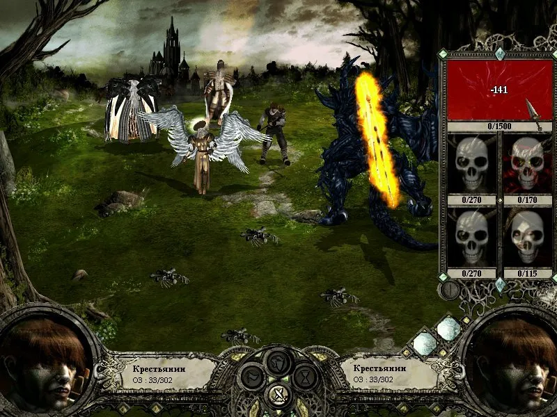 Остатки баронского отряда (кроме инквизитора!) также добиваются магией и лучниками. Теперь, когда в отряде барона остался один полуживой боец, он не сможет атаковать, как не сможет и воскресить Юбера де Лейли.