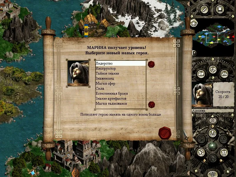 Остаётся Архангел. В отличие от боевых героев, может взять с собой только одного спутника. Зато не получает штрафов при передвижении, умеет лечить и водружать Жезлы, захватывая столь необходимые рудники. То, что нужно! Итак, решено: героем будет Архангел. Осталось определиться с лордом.