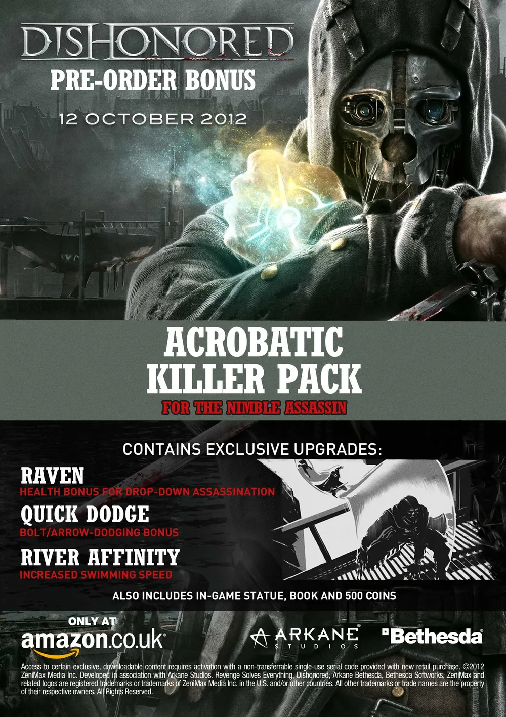Ozon http://www.ozon.ru/context/detail/id/18489017/?item=18489014 - 899 рублей. Версия с ограничениями на активацию и запуск, другой AppID, DLC «Acrobatic Killer Pack» (бонус предзаказа), куда входят Ворон (убийство в падении восстанавливает здоровье), Быстрый разворот (герой лучше уворачивается от стрел и арбалетных болтов), Река в помощь (герой быстрее плавает), Статуэтка, Книга и 500 монет.