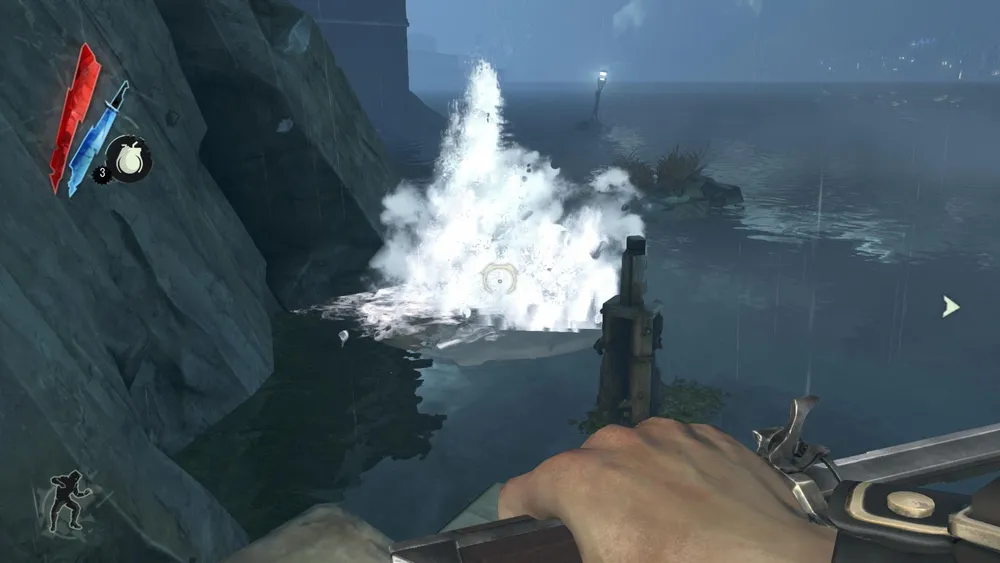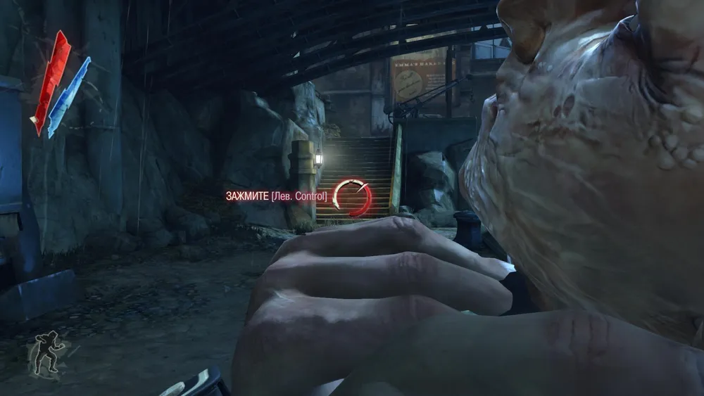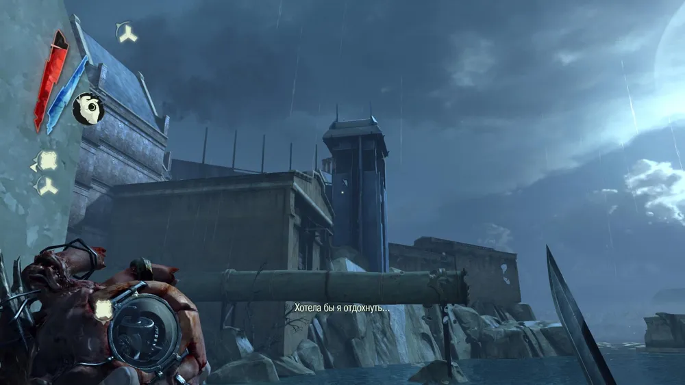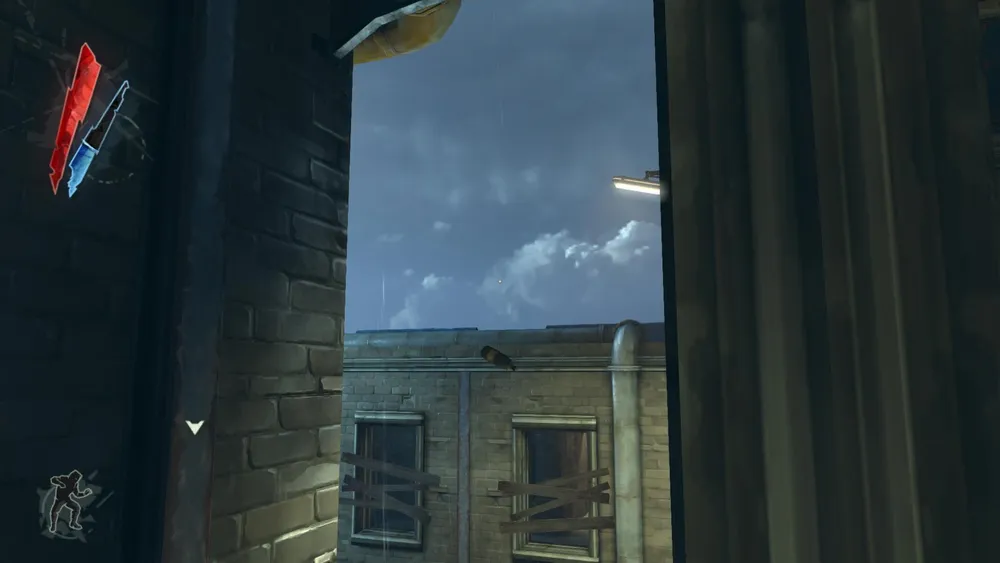 Корво крадется вдоль пристани, замечает одинокого охранника. Голос Сердца напутствует главного героя: