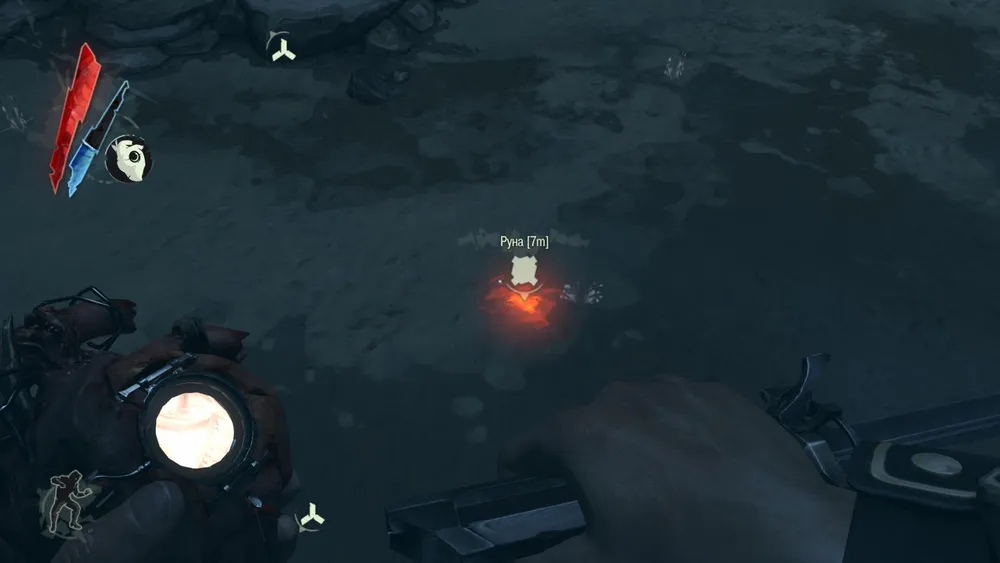 — Просто вытащи меня из чертового инвентаря! (Корво достает Сердце) Так, теперь я помогу тебе определить, где спрятаны руны и амулеты. Как только ты подойдешь к ним, я начну судорожно дрожать в твоей руке, чем ближе, тем сильнее…