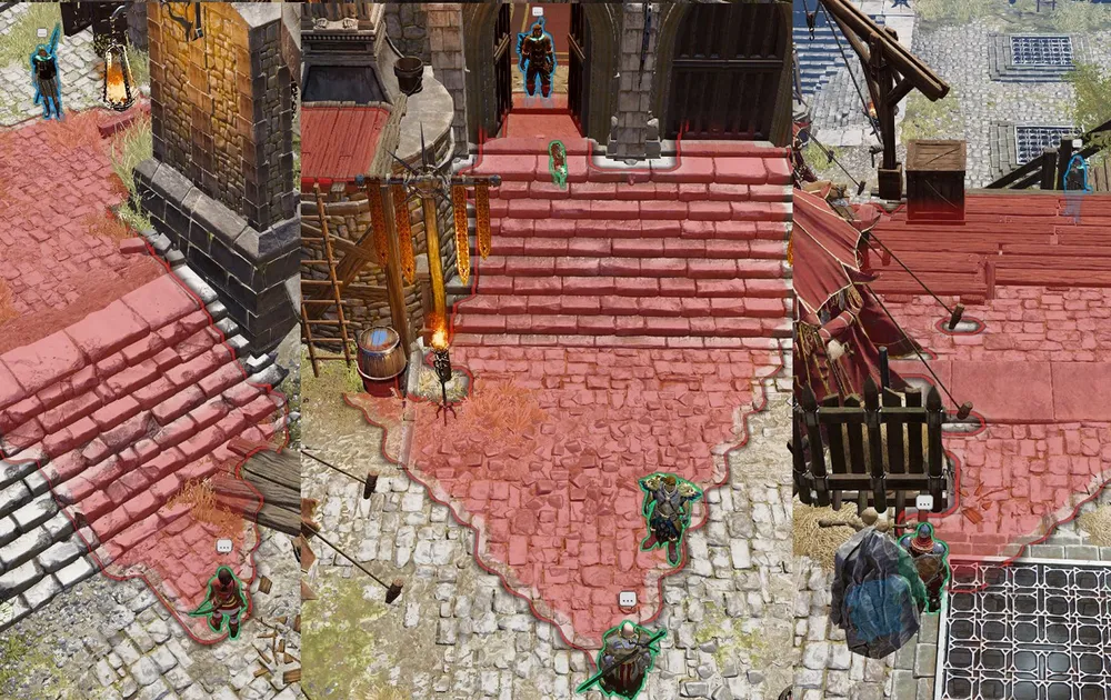 Обворовываем и уничтожаем стражу на внутренних воротах форта (беспощадная смерть собакам – они загрызут кота!). Если немного подождать, к воротам со второго яруса форта спустится одинокий стражник – и поднимет тревогу, обращаясь сразу ко всем бойцам отряда. Однако если поблизости находится лишь один герой, то свободный от беседы вор преспокойно обворует стражника.