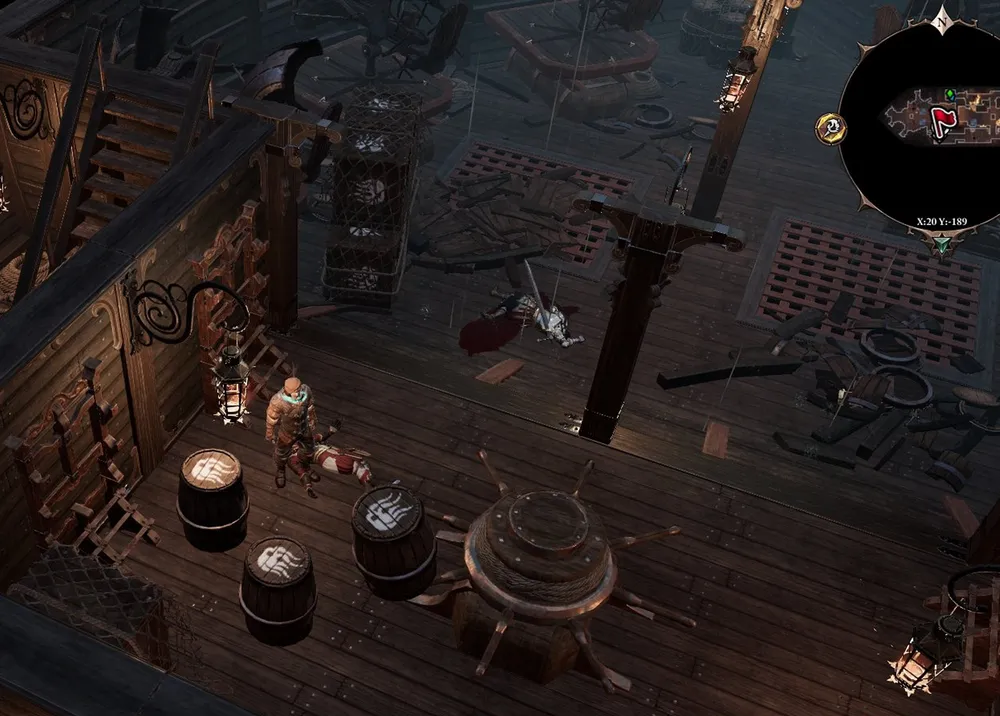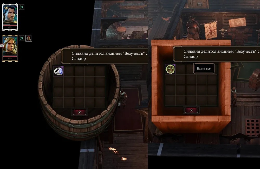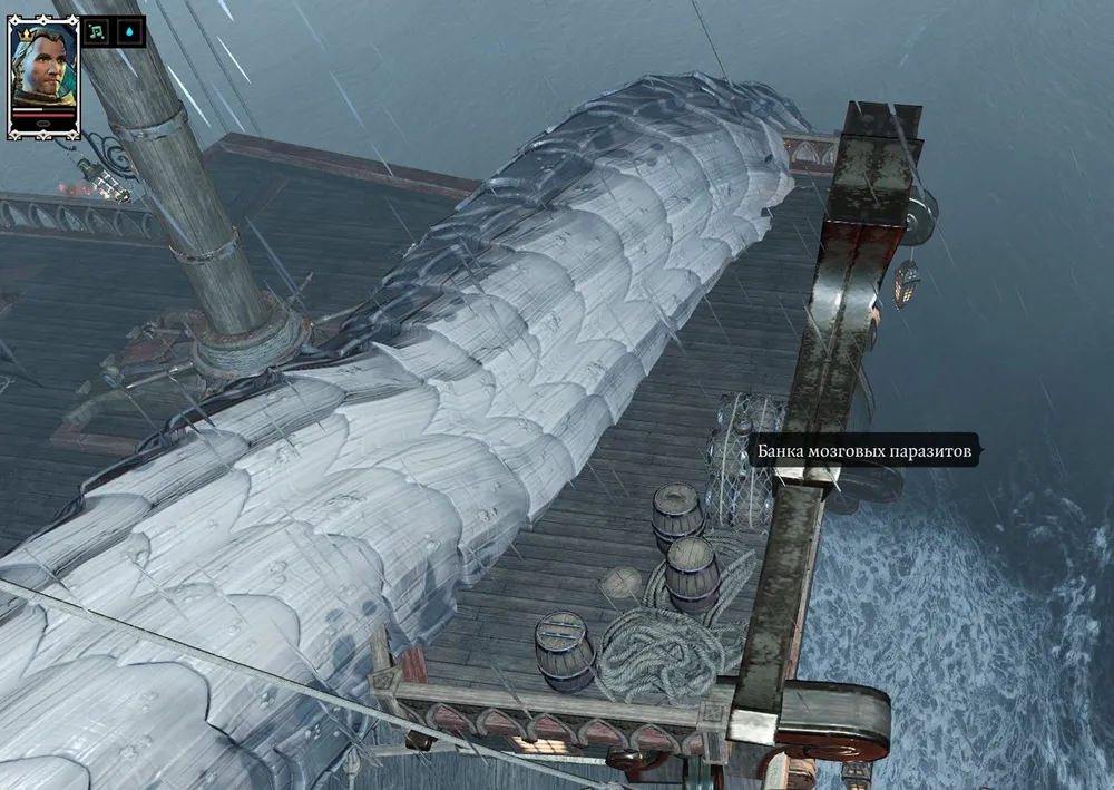 Несколько раз мне встречался вариант, при котором щупальце разбивало бочку в момент, когда её подхватывал герой. На первый взгляд, в рюкзаке две смертельно опасные бочки; но стоит выставить их на палубу, как одна моментально разрушается, ничего из себя не выпуская (к счастью). Хуже всего, что такое произошло на Безымянном острове, когда я решил применить тщательно сберегаемую бочку против епископа Александра – она просто развалилась. Поэтому проверяйте бочки, выставив их на палубу.