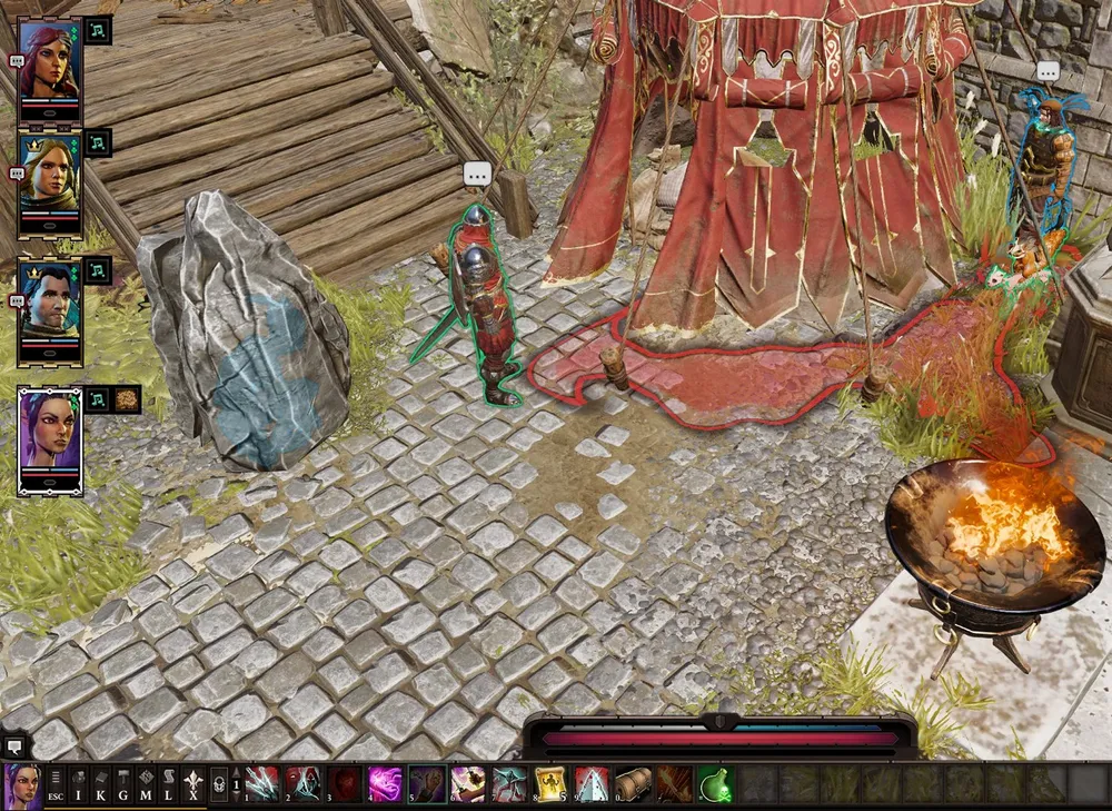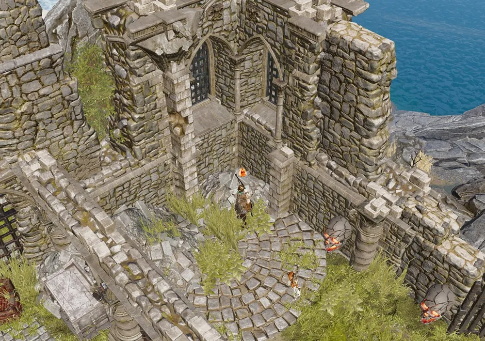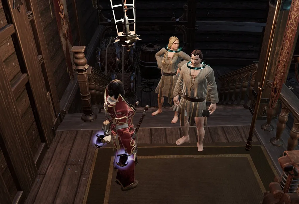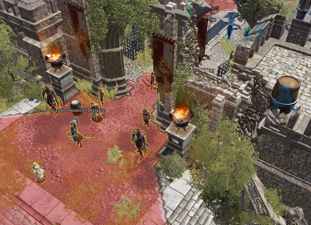 Высадились (вернее, выплыли) – что дальше? Имея в рюкзаке смертельно опасную бочку так и тянет сразу разделаться со свитой Даллис, но спешить с этим не стоит. (Стереотип мышления: Туман Смерти – против Даллис и Александра. Между тем у Сандора неплохой уровень телекинеза и в запасе тяжеленный сундук: можно перебить врагов им, сохранив бочку для более опасных врагов.) Собираем команду и бежим на стену, к магистру Арнике, выполнять её квест. К слову, если сразу напасть на группу в воротах, Арника станет враждебной, получить её задание будет проблематично.