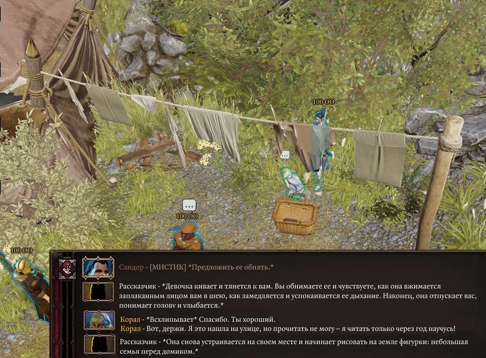 Нужный цветок арники (чтобы Миго не напал!) растёт за шатром Моны. От Миго спешим к Доктору Лесте, точнее, к её пациенту, необходимо выполнить три условия. Герой, заговоривший с доктором, должен быть ранен, тогда он получит лечебное зелье. Даину можно помочь двумя способами: предложить доктору выпивку для облегчения боли раненого или сразу применить лечебное заклинание, в том и другом случае отряд получит опыт. Но если предложить доктору выпивку и сразу же вслед за тем применить заклинание, опыт будет двойным. (Курочка по зёрнышку клюёт!)