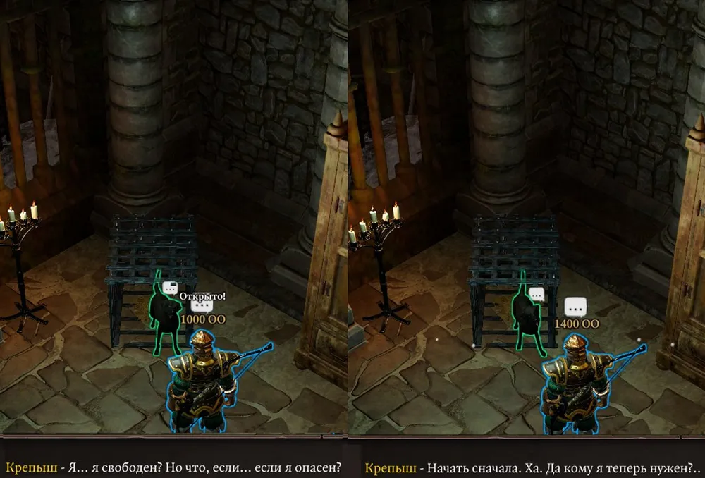 Спускаемся в тюрьму, спасаем магистра - но сначала убиваем стражников у подводной пристани: Сильвии нужен щит с бонусом к везучести. Пора снять ошейник! И тут, весьма вероятно, я совершил ошибку… Отправил на испытание Сильвию, как самую инициативную: ошейник сняли только с неё. Почему-то мне в голову не пришла простая мысль: обратиться к Толе ещё раз, Сандором: вдруг испытание прошёл бы и он? Возможно, потерян дополнительный опыт! В общем, как ни старайся, обязательно упустишь из вида что-то важное… (Проверил позднее: испытание может пройти только один герой, второй останется в ошейнике до момента спасения Гарета.)