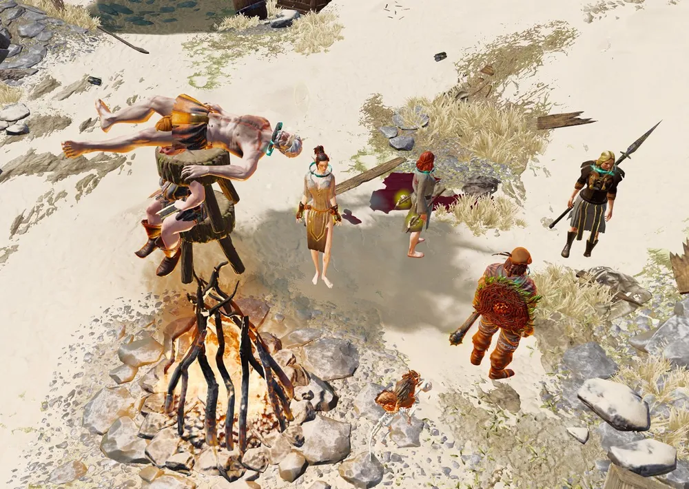 Упомяну два источника опыта, не замеченные Наблюдателем. Первый находится справа от входа в пещеру лягушек, на уступе; туда можно телепортировать одного из спутников. Причём нет необходимости спускать его вниз: стоит выйти из пещеры на пляж, как он окажется в составе отряда.