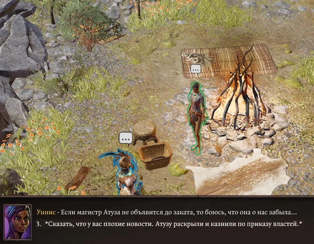 Обещаем Гриффу вернуть апельсины, сообщаем о воре и спешим назад, спасать его от Немоты. Затем предоставляем Себилле возможность поговорить с Жалохвостом – ещё опыт. Освобождаем Амиро и получаем от Сахейлы амулет с бонусом к везучести.