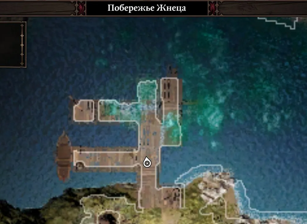 Теперь идём к месту высадки Чёрного Круга на остров, по-прежнему толкая перед собой корзину. Враг на пристани расположен компактно, и Адвоката убивали раз за разом, пока Сандор не догадался поставить корзину в отдалении и телепортировать одного из противников к «союзнику». Плюс удалось и в этом месте найти две точки, откуда враги не могли выбраться. Разделяй и властвуй!