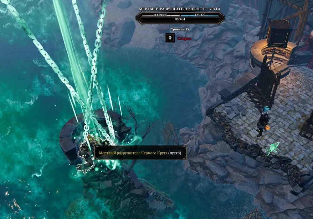 Пора напасть на Чёрный Круг, но прежде надо нейтрализовать страшного противника, в данный момент мёртвого: разрушителя Чёрного Круга. Будучи поднятым, он активирует бесконечную «Ауру уклонения»; сражаться с врагами становится невозможно. Телепортируем потенциального врага на ближайшую мостовую опору, заманиваем Адвоката корзиной – началось!