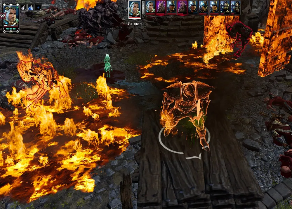 Герой атакует падшего лорда, но за один раунд его не убить! Уход в тень, и Арху снова сгорает в огненном дожде.