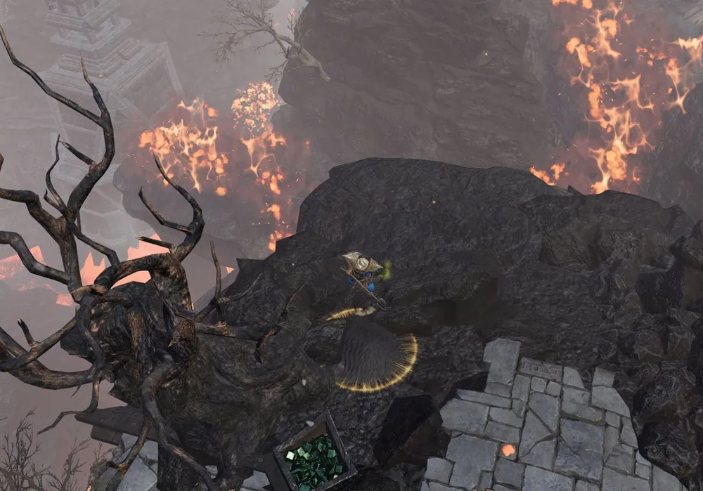 К лагерю Чёрного Круга вор не пошёл, решив продолжать движение против часовой стрелки по пылающим обрывам, с целью отыскать тайный вход в Академию. На одном из обрывов выкопал второй клад,
