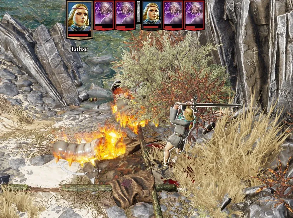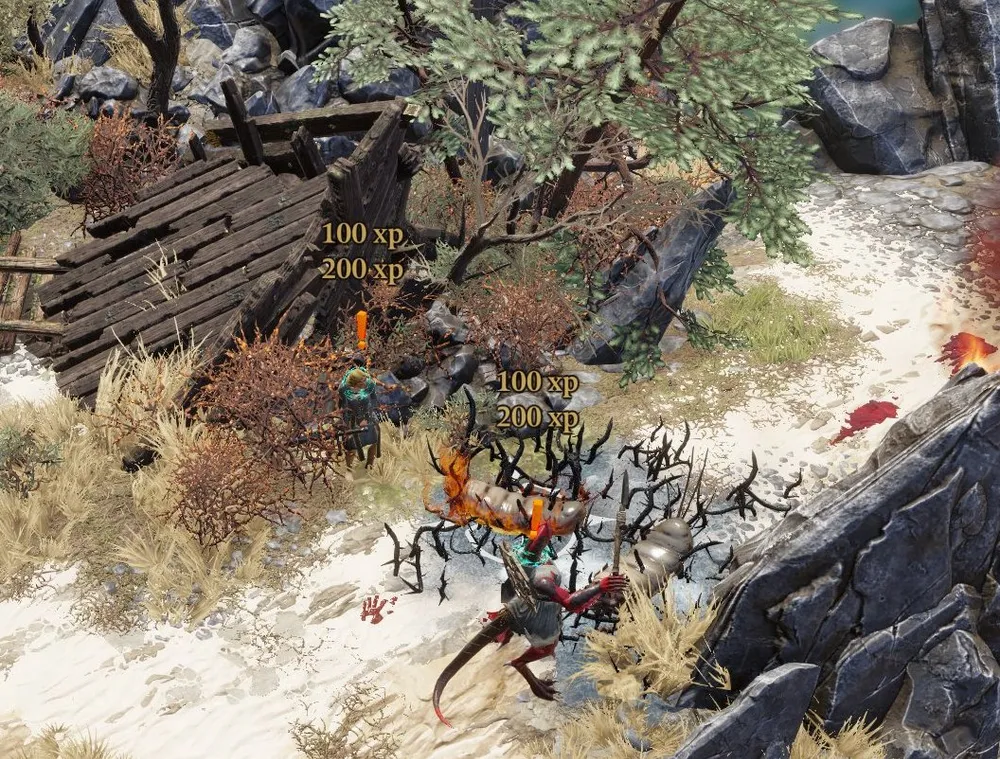 Первые враги попались почти сразу – кажется, какие-то личинки. Сохранил игру и проверил самый важный для меня вопрос: отличается ли количество опыта, полученной за один и тот же бой единственным героем и командой?
